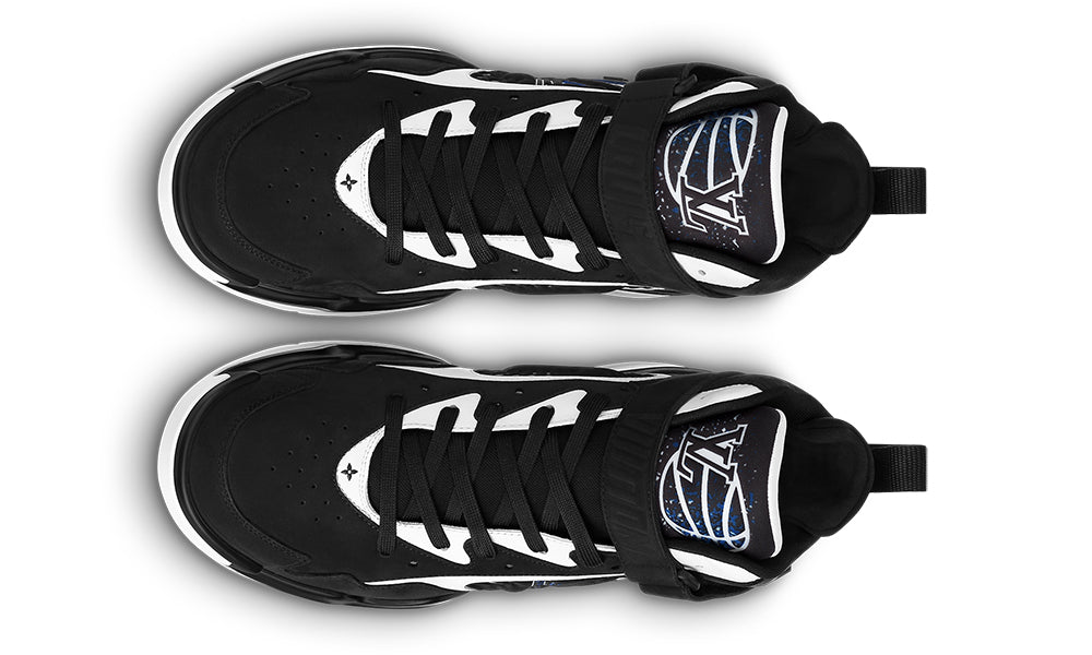 Crafted from suede calf leather, the LV Trainer 2 sneaker was a highlight of Louis Vuitton’s Fall-Winter 2022 men’s show. Like the original, iconic design by Virgil Abloh, it was inspired by vintage basketball sneakers, which it references with a padded collar, an adjustable velcro strap and an LV basketball signature on the tongue. The bicolor rubber outsole is decorated with Monogram Flowers.