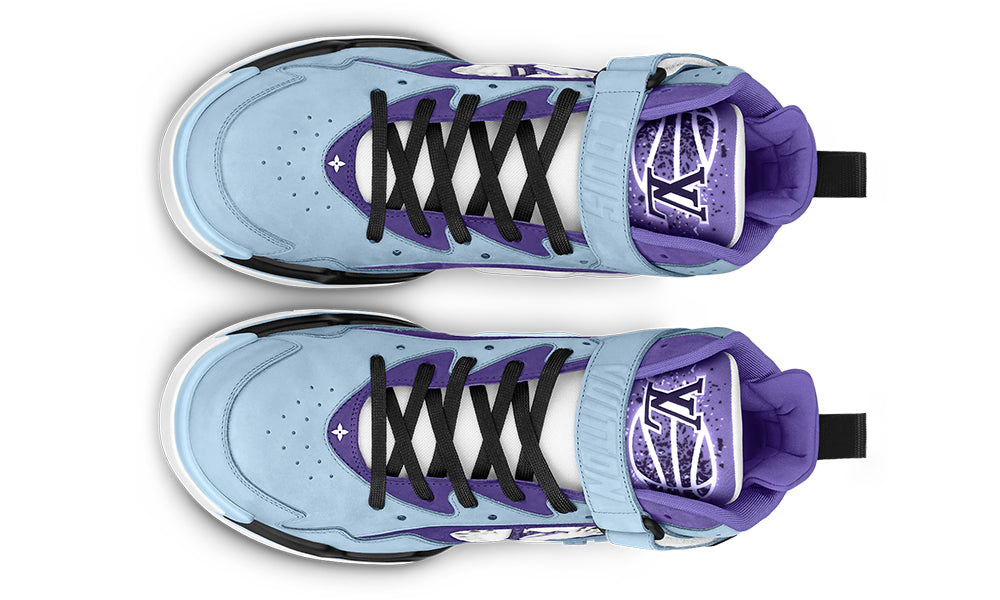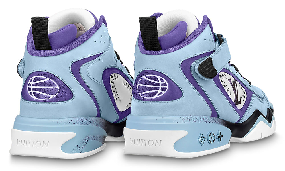 Crafted from suede calf leather, the LV Trainer 2 sneaker was a highlight of Louis Vuitton’s Fall-Winter 2022 men’s show. Like the original, iconic design by Virgil Abloh, it was inspired by vintage basketball sneakers, which it references with a padded collar, an adjustable velcro strap and an LV basketball signature on the tongue. The bicolor rubber outsole is decorated with Monogram Flowers.