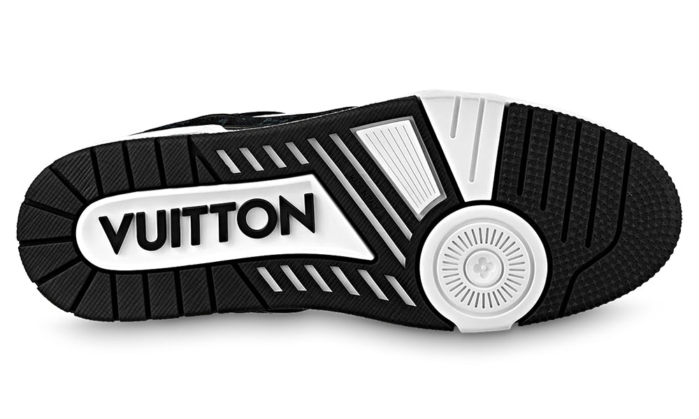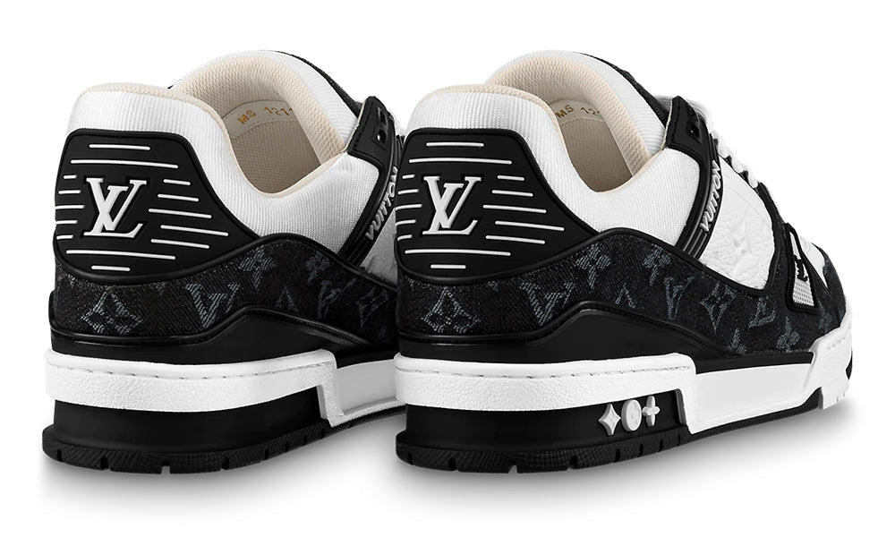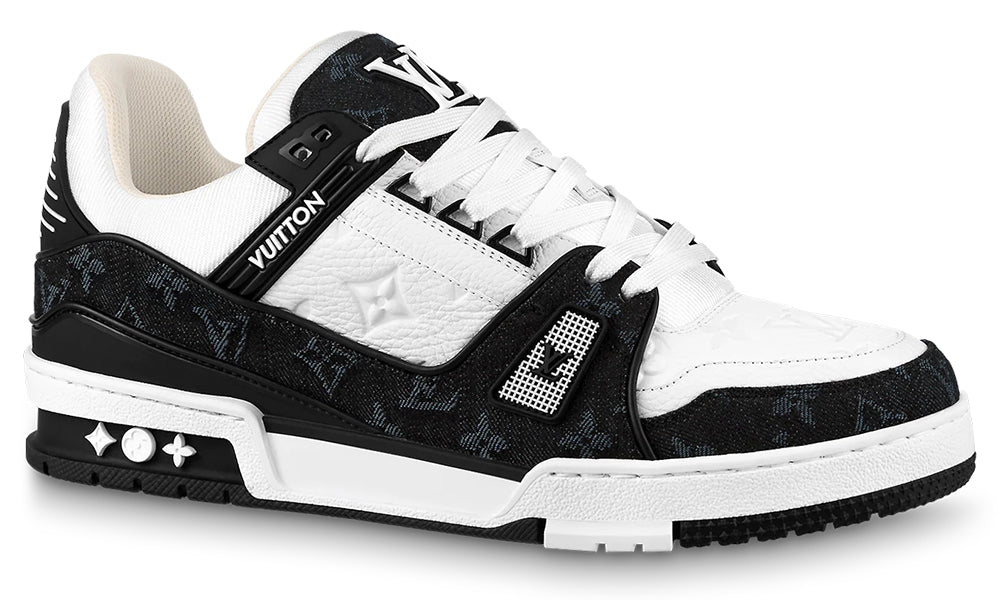The iconic LV Trainers are revisited this season in a combination of Monogram denim and Monogram-embossed grained calf leather. The contrasting colours and materials highlight the elaborate construction of this model, which was inspired by vintage basketball trainers. A single pair takes seven hours to stitch.