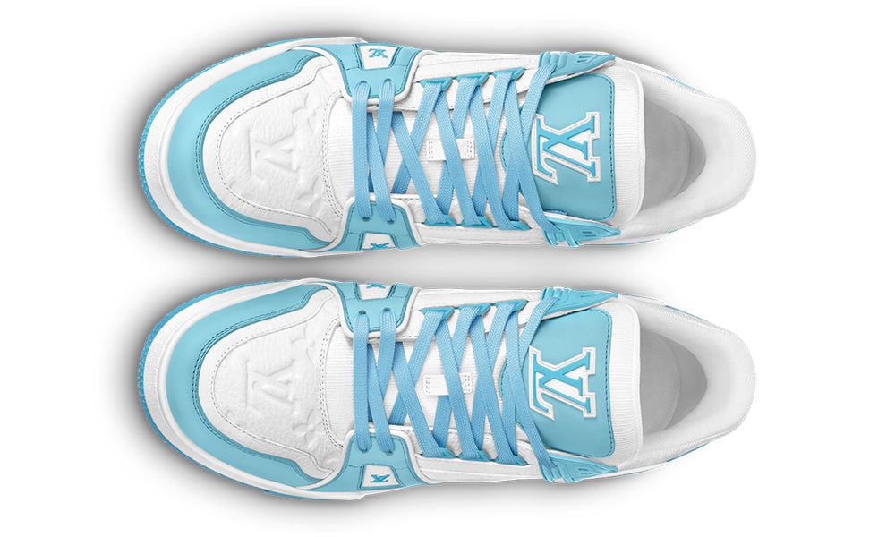 This edition of the LV Trainer sneaker teams smooth calf leather with grained calf leather embossed with Louis Vuitton’s signature Monogram pattern. This cult model was designed by Virgil Abloh, who drew inspiration from vintage basketball sneakers. It is revisited in pastel colors highlighting the elaborate construction of its upper, which takes seven hours to stitch.