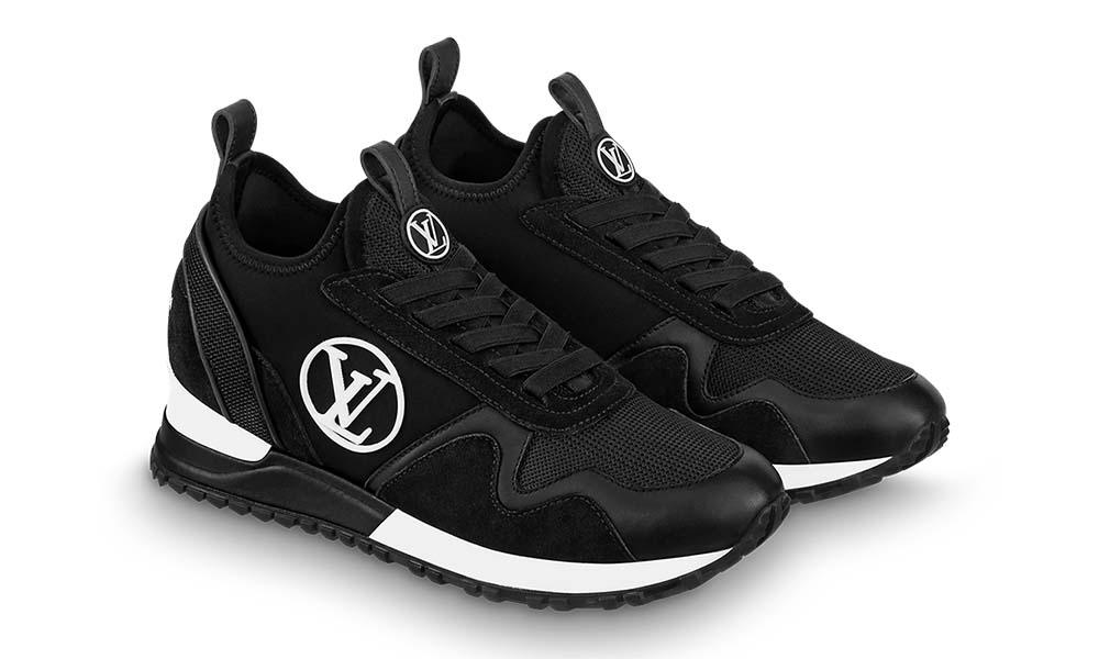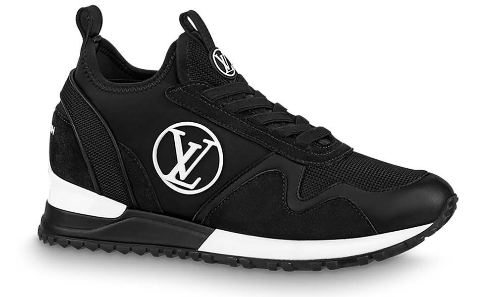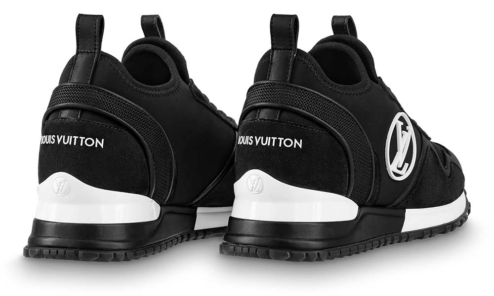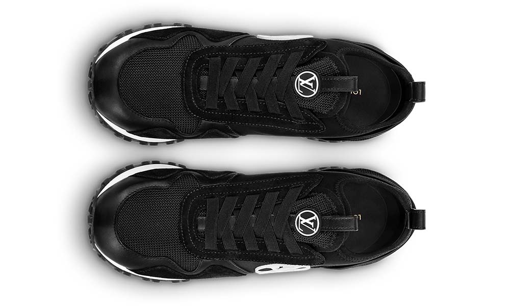 The Run Away Trainers are revisited in a slip-on version in a mix of materials, including calf leather, neoprene stretch textile and technical mesh. On the side, an oversized LV Circle signature stands out in white on the black background. This model is characterised by its hidden wedge construction, which discreetly adds extra height.